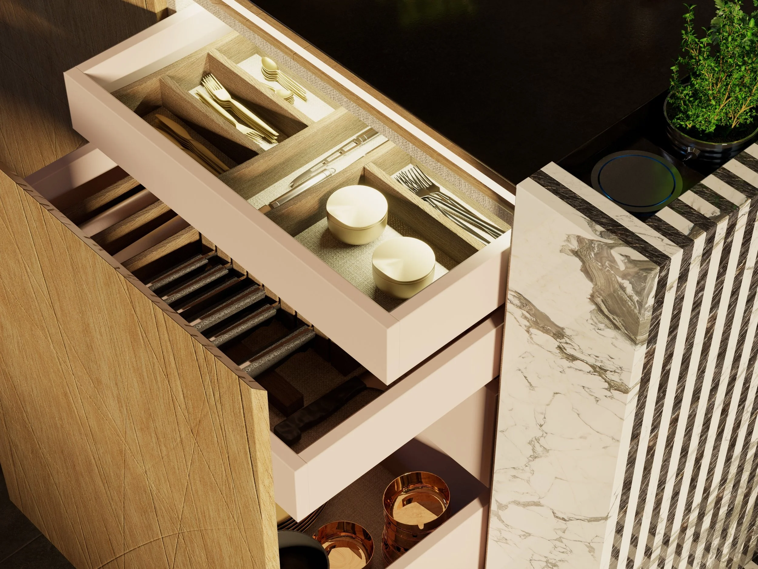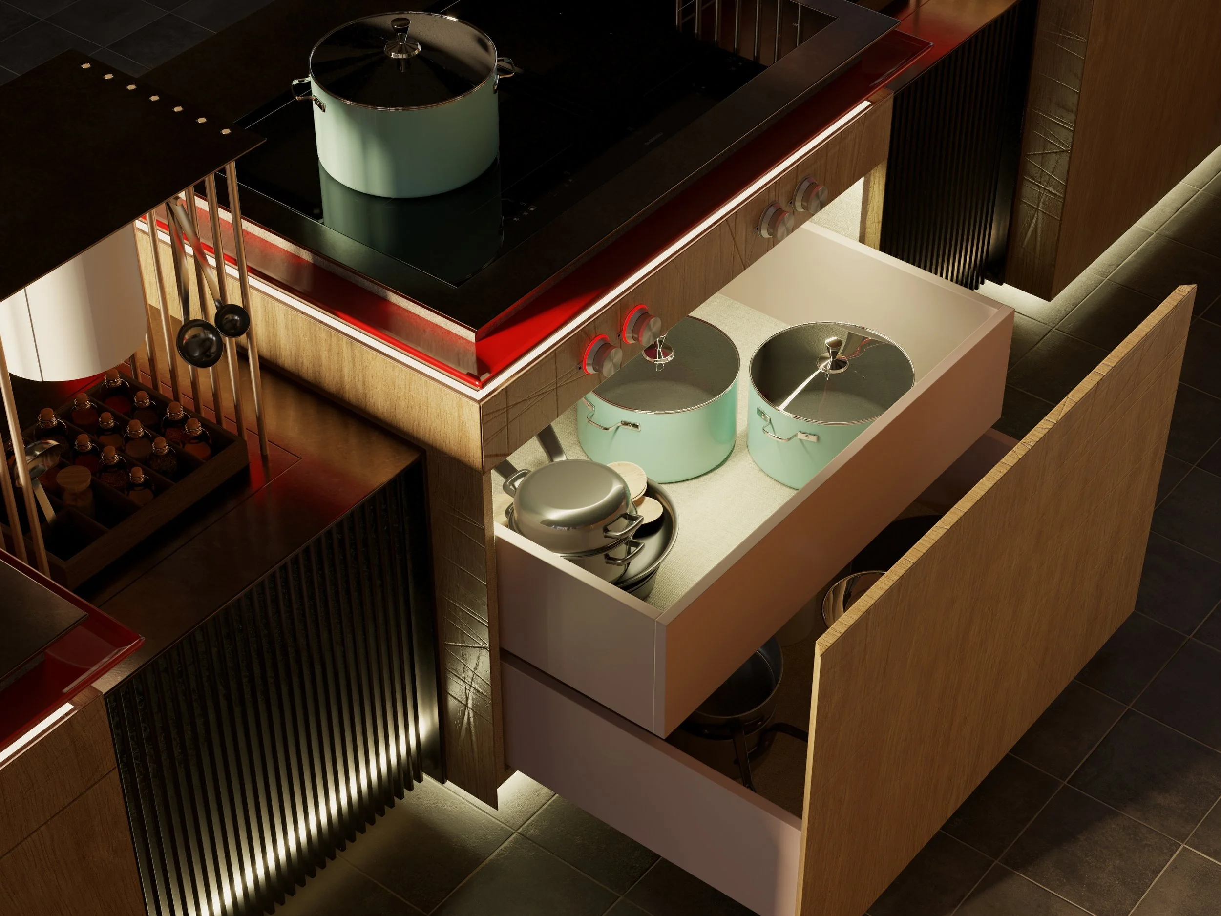 This is more than just a kitchen- it's a work of art; each element reflects the spirit and aesthetics of Japanese culture. Its design is unique and unparalleled: its forms evoke the architecture of traditional buildings but interpreted in a contemporary way.