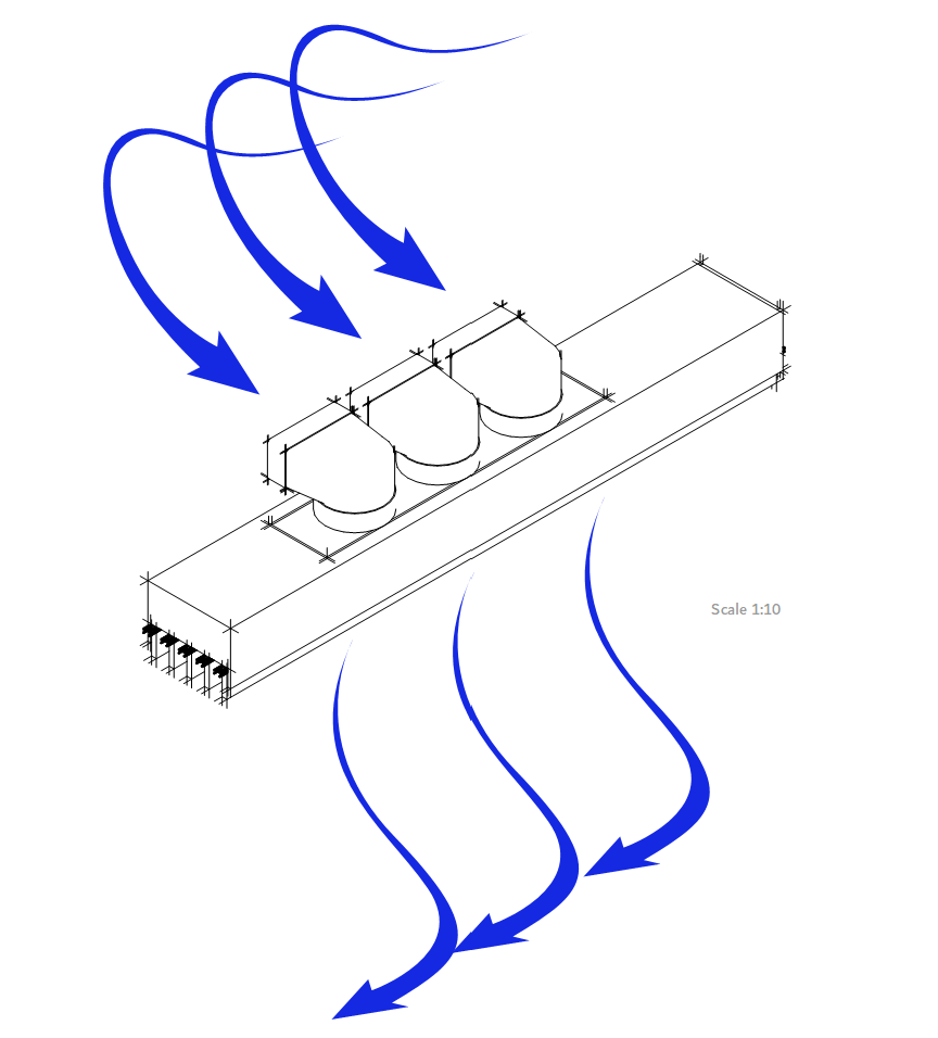 This way the House can get 30-50 liters per day. In one month the House can collect 1 cubic meter of water for autonomous usage.